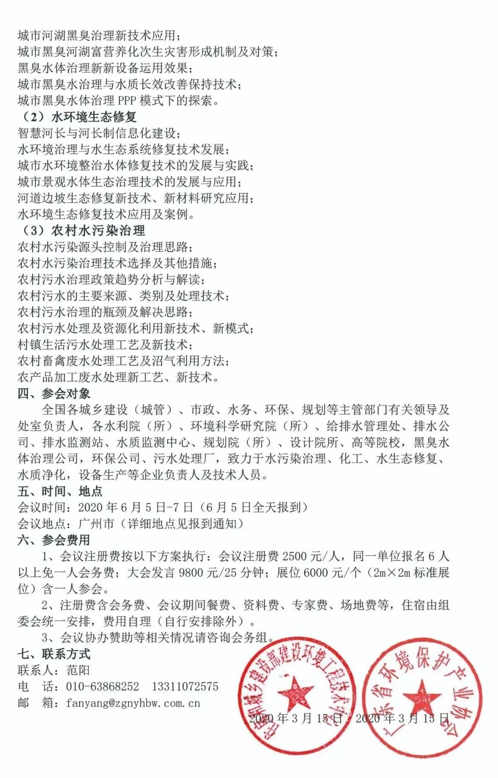 《关于召开“2020全国城市及农村黑臭水体整治与水环境生态修复论坛”的通知》
