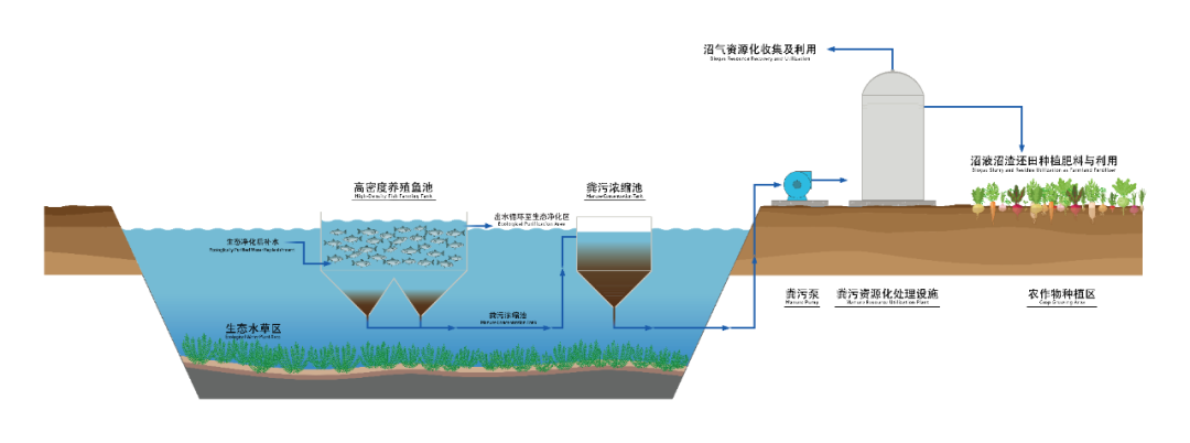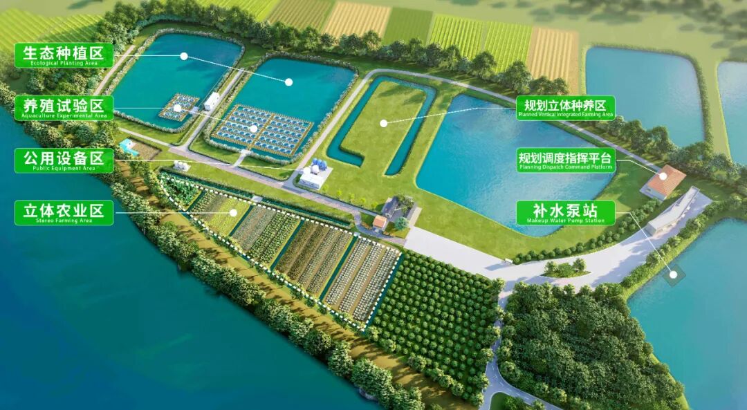 鹏凯环境生态绿色循环养殖模式以现有的鱼塘为基础架构,通过构建低碳养殖单元系统、循环水生态系统、集污及资源化系统和数字化智慧养殖系统,集成“生产增效—污染控排—生态修复”协同机制,率先推动水产绿色循环养殖模式升级转型。